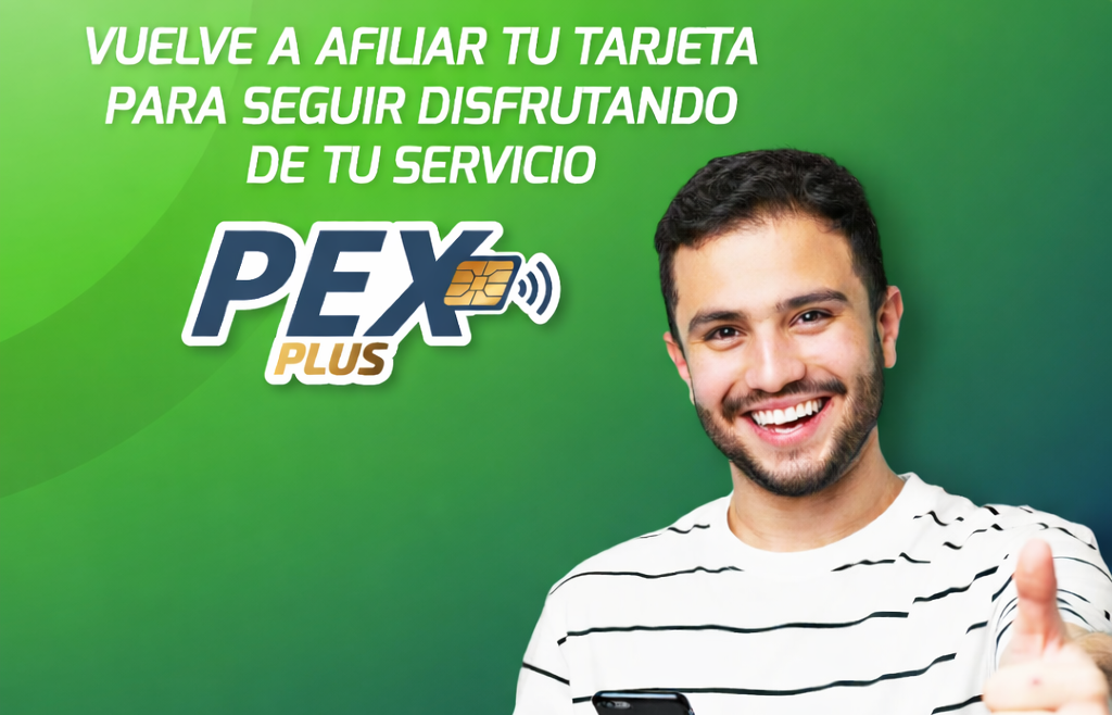 Hasta el 28 de febrero, todos los usuarios de PEX Plus deben volver a afiliar su tarjeta a través de la App para continuar usando el servicio sin interrupciones.