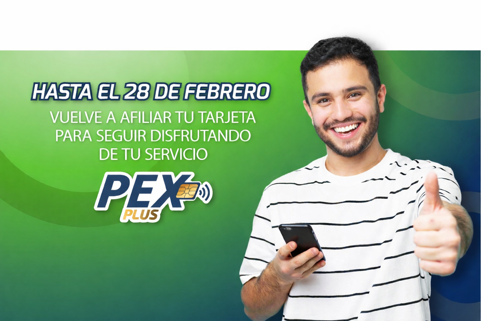 🚨 Hasta el 28 de febrero, todos los usuarios de PEX Plus deben volver a afiliar su tarjeta a través de la App para continuar usando el servicio sin interrupciones.