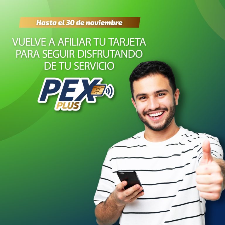 Hasta el 30 de noviembre, todos los usuarios de PEX Plus deben volver a afiliar su tarjeta a través de la App para continuar usando el servicio sin interrupciones.